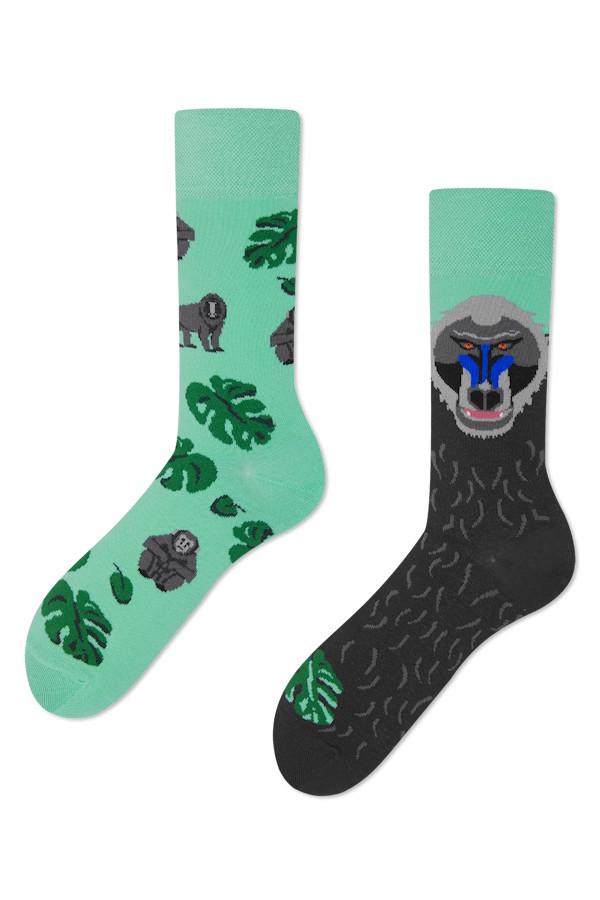 Przywitaj dzikość tropikalnej dżungli! Skarpetki The Drill to duet odważnych naczelnych - z jednej strony barwny mandryl, z drugiej spokojny goryl wśród liści. Idealne dla fanów egzotyki, podróży i... charakteru. Pokaż swoje dzikie oblicze - i niech każdy krok mówi: jestem z natury wyjątkowy!