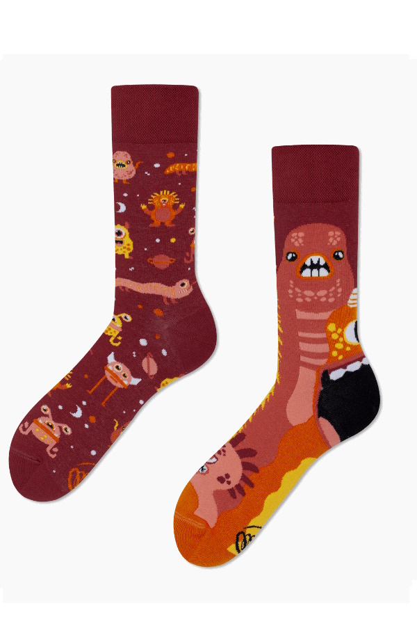 Potwory spod łóżka bywają straszne, każdy ma je swoje ale trzeba przyznać, że większość z nich wygląda jak kosmici. Nie straszne Ci takie potwory pokaż to chodząc w takich strasznych skarpetkach Many Mornings.