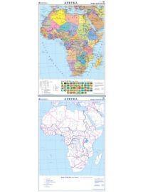 Na pierwszej stronie znajdują się mapa polityczna Afryki na tle sieci rzecznej oraz flagi państw tego kontynentu. Druga strona ułatwia sprawdzenie u uczniów znajomości rozmieszczenia państw Afryki .