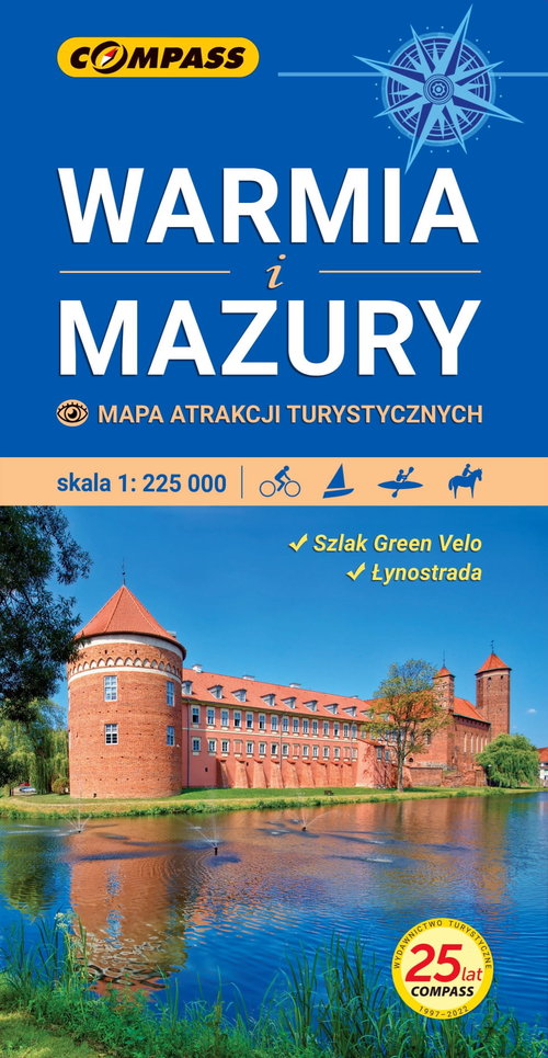 Niniejsze wydawnictwo to ogólna mapa poglądowa rozległego obszaru, jakim są Warmia i Mazury. Dedykowana jest zwłaszcza turystom zmotoryzowanym. Przedstawiono na niej aktualną sieć dróg, wybraną bazę noclegową oraz propozycje najciekawszych atrakcji regionu. Wśród nich znajdują się: zamki, pałace, kościoły, muzea, zabytki techniki, obiekty militarne, cuda przyrody, wyróżniające się miejsca widokowe i panoramy. Na odwrocie mapy zamieszczono krótkie opisy polecanych miejsc. Co warte jest podkreślenia, obiekty te zostały wybrane i opisane przez człowieka legendę tego regionu - szefa oddziału PTTK Olsztyn, znawcę i autora licznych publikacji o Warmii i Mazurach - Mariana Juraka.