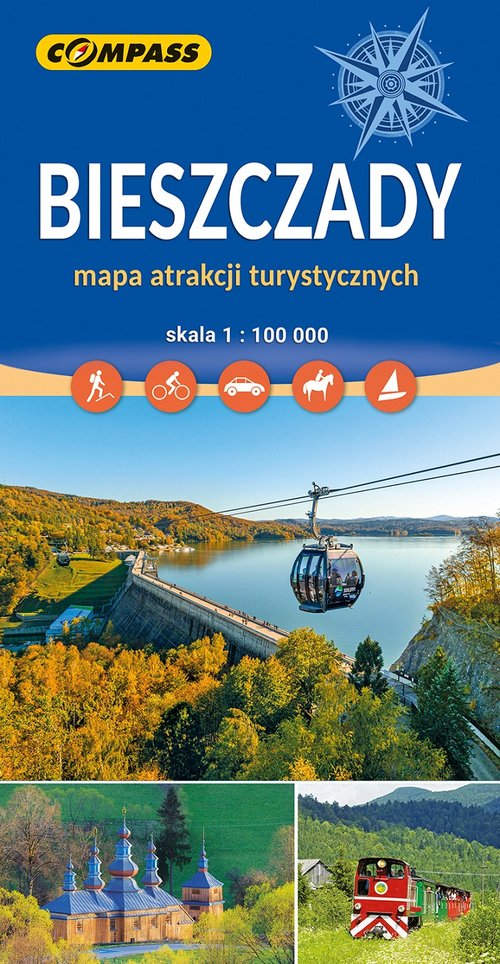 To mapa całych Bieszczad w ujęciu turystycznym – obejmująca rozległy rejon od Komańczy na zachodzie po granicę z Ukrainą na wschodzie oraz od Birczy i Arłamowa na północy po Przełęcz Użocką na południu. Znaleźć na niej można wszystkie rodzaje atrakcji turystycznych Bieszczadów: przyrodnicze, architektoniczne, historyczne, kulturowe czy sportowo-rekreacyjne. Opis kilkudziesięciu – naszym zdaniem – największych atrakcji został umieszczony na odwrocie mapy, a sama mapa wzbogacona o kolorowe ikony. Niezależnie od preferencji - Bieszczady samochodem, Bieszczady rowerem, Bieszczady pieszo, ta mapa będzie bardzo przydatna. Ale szczególnie polecana jest dla turystów zmotoryzowanych, jak i rowerowych. Jest przy tym na tyle dokładna, iż służyć może również do uprawiania turystyki pieszej – pokazano na niej bowiem także szlaki piesze. Nowe wydanie mapy 2023 r. uwzględnia wszelkie aktualizacje z prezentowanego obszaru. Pokazana jest m.in. oddana latem 2022 kolej gondolowa nad zaporą w Solinie oraz wcześniejsze obiekty, jak oddana jesienią 2020 r. wieża widokowa na Jeleniowatym nieopodal Mucznego czy żółty szlak na Dział z Przełęczy Wyżniej.