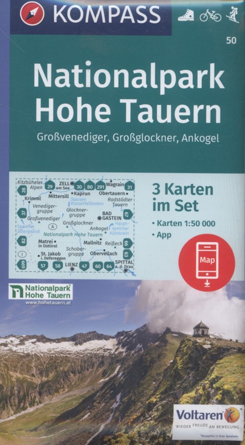Hohe Tauren Park narodowy Wysokie Taury 1:50 000 - zestaw trzech map i aplikacja na telefon komórkowy.
