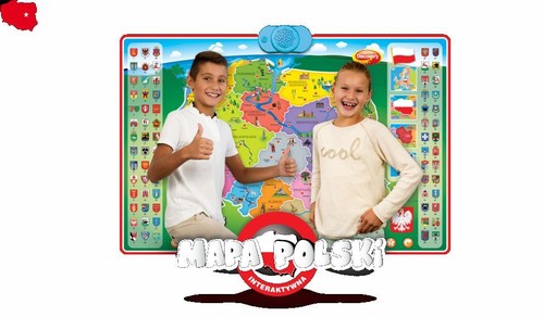 Innowacyjna Mapa Polski, która dostarcza wiedzy na temat naszego kraju. Posiada panel dotykowy z aktywnymi ikonkami, pod którymi kryją się informacje dotyczące historii i geografii, a nawet polski hymn – Mazurek Dąbrowskiego! Mapa nie tylko uczy, ale też bawi. W trybie quiz dla najmłodszych Dzieci będą musiały wskazać właściwe położenie polskich miast. Trudniejsza wersja testu , zatytułowana Super Quiz, pozwoli całej rodzinie włączyć się w emocjonującą rozgrywkę. Jej celem jest udzielenie poprawnej odpowiedzi na pytania z zakresu herbów, znanych osób, budowli i polskich miast. Mapę można zawiesić na ścianie albo bawić się nią na podłodze. Najważniejsze, aby było Wam wygodnie! Produkt przeznaczony jest dla graczy od szóstego roku życia.