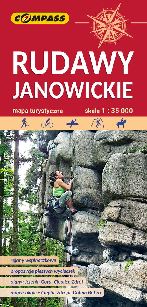 Rudawy Janowickie - mapa turystyczna w skali 1:35'000 z informatorem na odwrocie. Przedstawia niewielkie, ale jakże urokliwe pasmo górskie we wschodniej części Sudetów Zachodnich. Mapa główna sięga po Jelenią Górę na północy, Karpacz i Kamienną Górę na południu. Na zachodzie zasięg wyznaczają Sosnówka i Staniszów, a na wschodzie Marciszów. Dodatkowo publikacja zawiera mapy okolic Cieplic-Zdroju i Dolinę Bobru oraz plany centrum Cieplic-Zdroju i Jeleniej Góry.