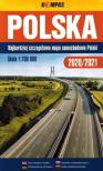 Samochodowa mapa Polski w skali 1:700 000. Mapa zawiera nazwy węzłów na autostradach i drogach ekspresowych, w tym także na budowanych i planowanych. Plany przelotowe dla polskich miast i aglomeracji oraz okolice Warszawy oraz okręg katowicki w skali 1:200 000. Mapa zawiera: - pełną sieć autostrad, dróg ekspresowych, krajowy,ch i wojewódzkich, - gęstą sieć dróg asfaltowych niższych kategorii - ponad 14 000 zaznaczonych miast, osiedli i wsi, - aktualne informacje o autostradach i innych drogach budowanych i planowanych, - plany przelotowe miast (Białystok, Bydgoszcz, Kielce, Bielsko-Biała, Częstochowa, Kraków, Lublin, Łódź, Olsztyn, Płock, Opole, Poznań, Rzeszów, Toruń, Trójmiasto, Zakopane, Szczecin, Wrocław, Zielona Góra), - okolice Warszawy i okręg katowicki w skali 1:200 000 - miejsca noclegowe i parkingi, - legenda mapy w 5 językach (polski, angielski, niemiecki, słowacki, litewski), - indeks miejscowości.