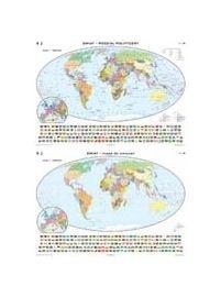 na jednej stronie znajduje się mapa w skali 1:19 000 000 ukazująca podział polityczny świata; ponadto w większej skali (1:9 500 000) zaprezentowano podział polityczny Europy; dodatkowo przedstawiono flagi poszczególnych państw
