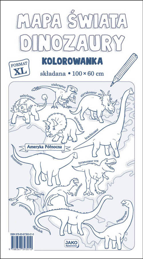 Ze składaną kolorowanką "Mapa świata. Dinozaury" dzieci mogą wyruszyć w fascynującą podróż do dawnego świata tych ciekawych stworzeń. Dowiedzą się przy tym, jakie gatunki zostały odkryte na poszczególnych kontynentach. Kredki w dłoń! Ogromny, ilustrowany arkusz prehistorycznego świata o wymiarach 100 x 60 cm jest do dyspozycji małego artysty. Kolorowanie zapewnia doskonałą rozrywkę, a przy tym rozwija zdolności manualne, staranność oraz koordynację wzrokowo-ruchową. To znakomite przygotowanie do szkoły, a także możliwość wyciszenia.