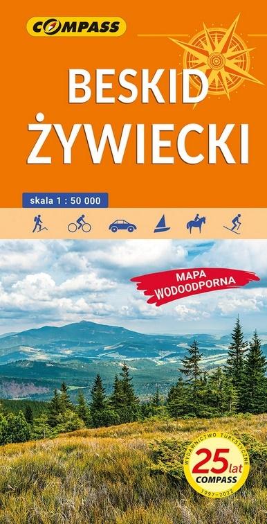 Jest to mapa dwustronna w skali 1:50 000. Przedstawia teren Beskidu Żywieckiego, z Babiogórskim Parkiem Narodowym i najwyższym szczytem - Babią Górą (1725 m n.p.m.), która nie tylko góruje nad samym Beskidem Żywieckim, ale także nad całymi Beskidami Zachodnimi. Na mapie znajduje się także część Beskidu Śląskiego - sięgając na zachodzie po miejscowości Istebna i Jaworzynka, czyli miejsce styku granic Polski, Słowacji i Czech. ""Żywiecka"" część mapy obejmuje cały Beskid Żywiecki: Suchą Beskidzką na północy, Worek Raczański na południu, Zwardoń na zachodzie oraz Jordanów i Rabkę-Zdrój na wschodzie.