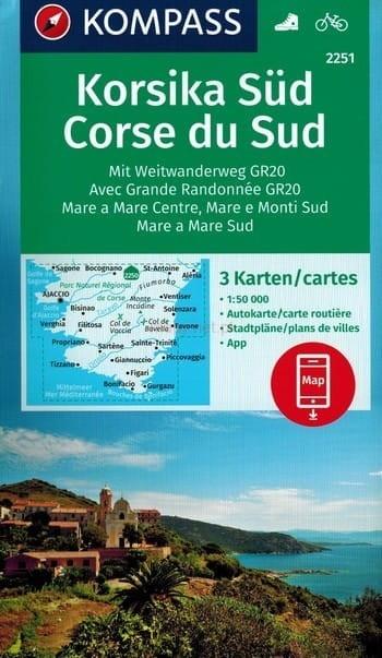 Zestaw trzech obszernych dwustronnych, składanych map turystycznych w skali 1:50 000 obejmujących południową Korsykę. Legenda w języku: niemieckim, angielskim oraz francuskim.
