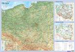 Mapa Polski w skali 1:1 500 000 ma bardzo bogatą i szczegółową treść: granice województw, miasta, ważniejsze wsie,