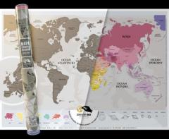Moda na Mapę Zdrapkę rozpoczęła się w 2004 roku. Ten wyjątkowy prezent podbił serca internautów. Mapa zdrapka budzi ciekawość, intryguje, zachęca do poznawania świata, wspominania podróży lub planowania kolejnych wakacji. Ekskluzywna tuba teleskopowa 55 cm wysokości, 50 mm średnicy, z metalowymi denkami. Wykonana z grubego papieru kredowego (50x70 cm) pokrytego błyszczącym lakierem UV Cenny drobiazg: wizytówka z nitem metalowym na sznurku – idealna na prezent!