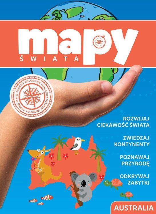 Zawarte w kolejnych zeszytach duże i kolorowe mapy kolejnych części świata, dzięki swojemu imponującemu formatowi, są przeznaczone są do umieszczenia na stałe w miejscu widocznym dla dziecka, czyli np. do powieszenia na ścianie, czy przyklejeniu na drzwiach jego pokoju. Ciekawa forma ilustracji zaciekawi każdego malucha i zachęci do poznawania świata. Dołączone do zeszytu naklejki pozwolą nauczyć dziecko podstawowych informacji na temat przyrody, czy zabytków, ale także wspomogą jego kreatywność.