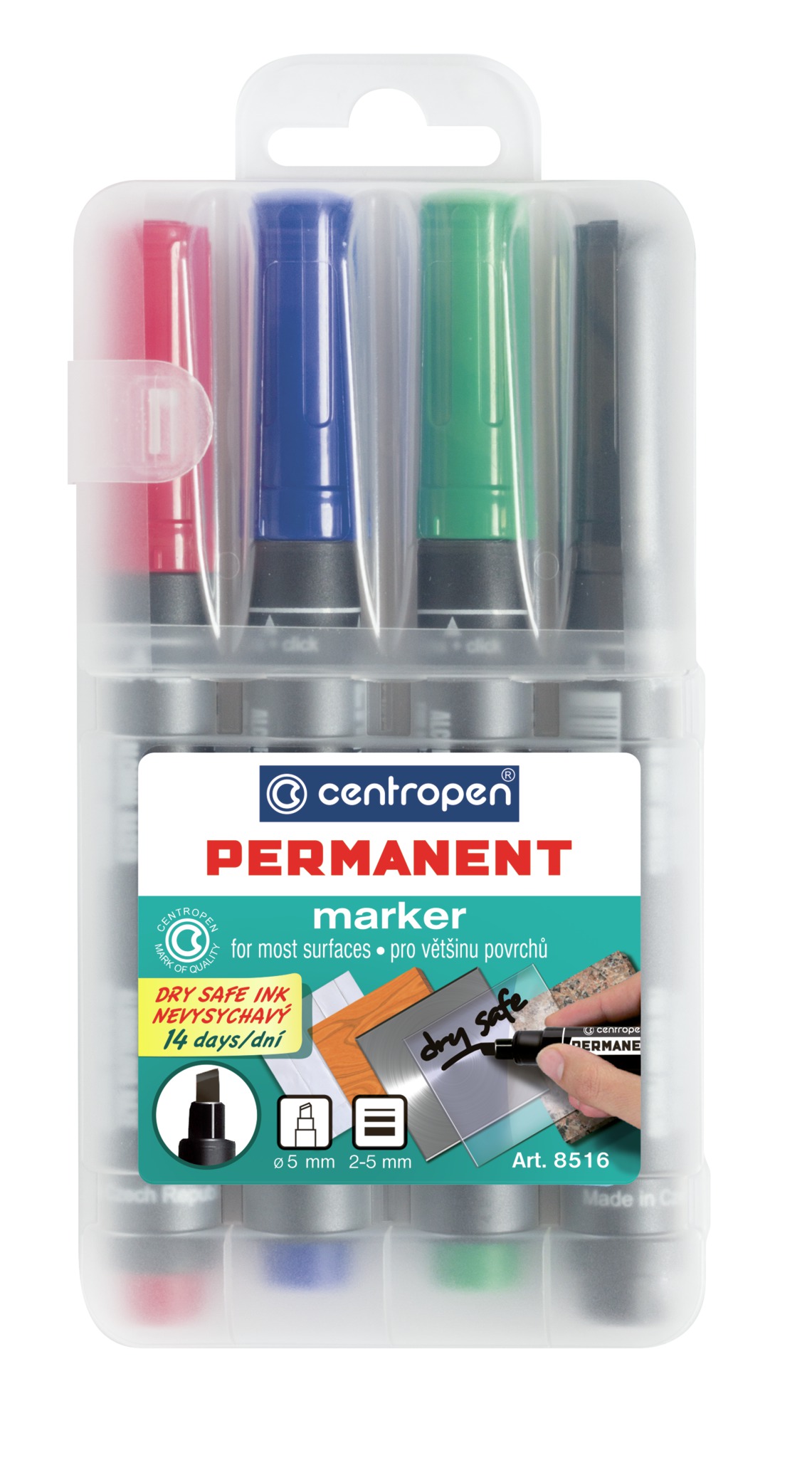 Opakowanie Marker Centropen Permanent dry safe ink 8516 mix 4 kolory k/ś niewysychający