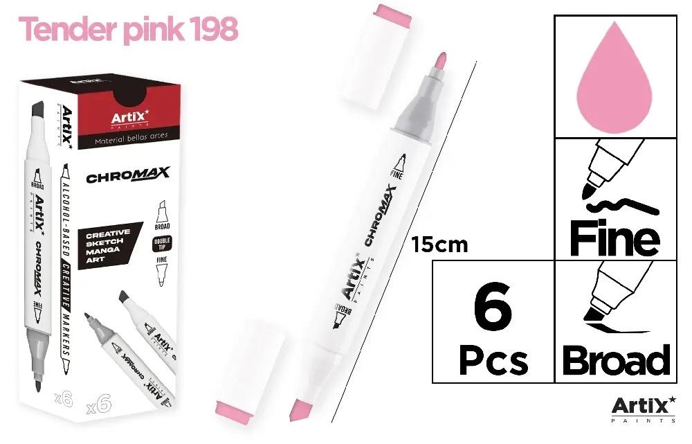 Marker chromax artix z dwoma końcówkami tender pink 198
