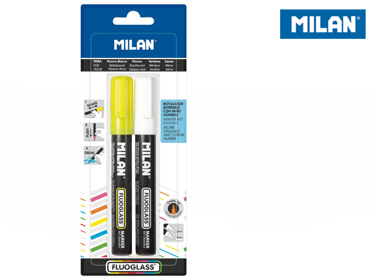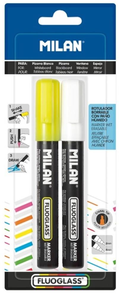 Opakowanie Marker do szyb Fluoglass biały i żółty MILAN