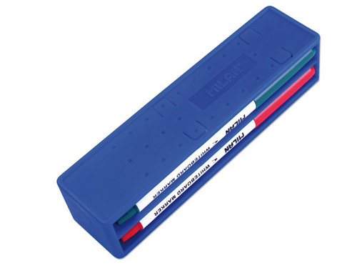 W zestawie 4 krótkie, cienkie markery do tablic suchościeralnych z okrągłą końcówką. Gąbka do wycierania tablic suchościeralnych z magnesami do przymocowania. Szybkoschnący tusz na bazie alkoholu. Najlepiej trzymać w pozycji poziomej.