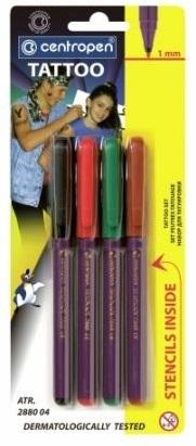 Opakowanie Marker do tatuażu 4 kolory + szablon