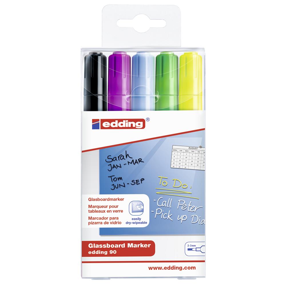 Marker edding do tablic szklanych czarny + mix kolorów, etui 5szt