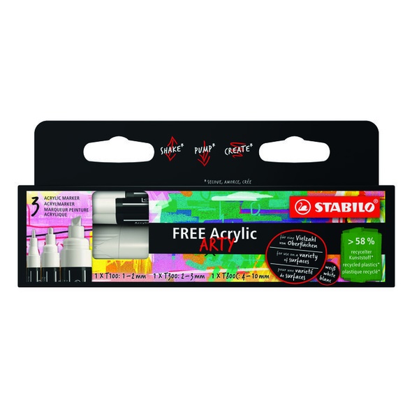 Marker Free Acrylic 3szt biały 3 różne grubości STABILO