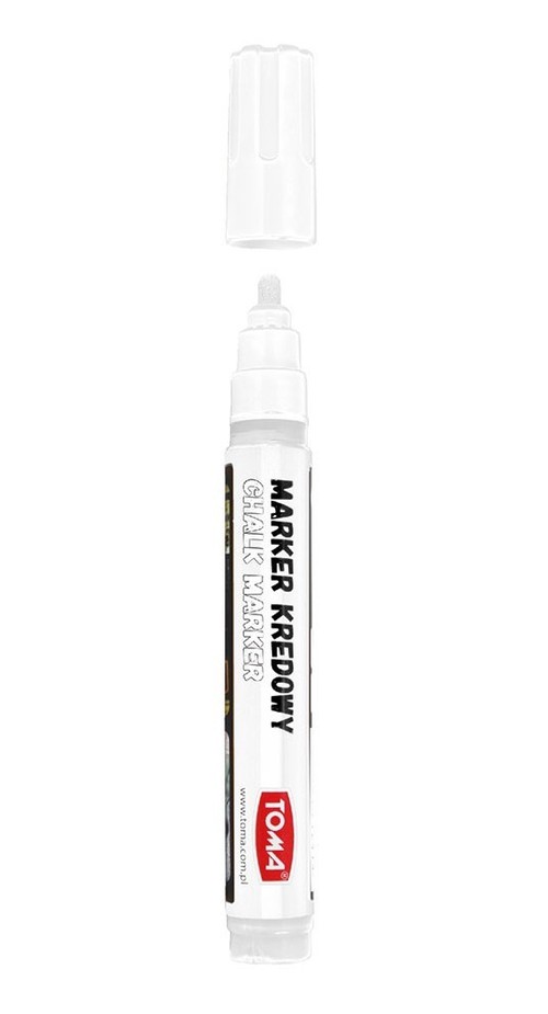 Marker z płynną kredą, do pisania po tablicach czarnych, białych, po szkle i powierzchniach plastikowych. Zmywalny wodą, jak zwykła kreda np. tradycyjną. Nasączalne końcówki fibrowe, bezwonny tusz pigmentowy, nie zawiera xylenu.