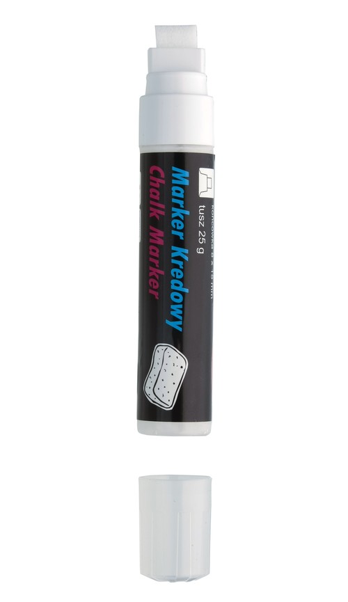 Marker z płynną kredą, do pisania po tablicach czarnych, białych, po szkle i powierzchniach plastikowych. Zmywalny wodą, jak zwykła kreda – np. tradycyjną. Nasączalne końcówki fibrowe, bezwonny tusz pigmentowy, nie zawiera xylenu. TO-290 – końcówka ścięta 15-8 mm, kolor biały.