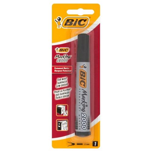 Tusz permanentny na bazie alkoholu. Plastikowy korpus. Neutralny zapach. Nie wysycha przez 3 tygodnie bez skuwki. Akrylowa blokowana końcówka. Okrągła końcówka. Szerokość linii pisania 1,7 mm. Długość linii pisania do 1400 m. Średnica końcówki 5,5 mm. Do stosowania na większości powierzchni: papier, karton, szkło, plastik, metal. Produkt bezpieczny - nie zawiera toksyn i metali ciężkich. Produkt nie zawiera PVC - polichlorku winylu.
