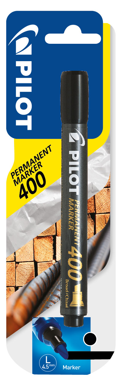 Marker Permanentny SCA-400 w kolorze czarnym na blistrze. Hit wśród markerów! Wytrzymuje aż 24h bez skuwki! Wytrzymały, wodoodporny tusz w wyraźnych kolorach oraz fibrowa końcówka sprawią, że marker jest idealny dla każdego! Pisze po każdej powierzchni. Występuje w kolorach: czarny, czerwony, niebieski, zielony. Posiada ściętą końcówkę, o grubości pisania maks. 4 mm. Długość linii pisania - min. 500 m