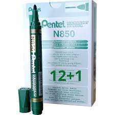 Marker permenentny z okrągłą końcówka N850. Wyjątkowo popularny i przystępny cenowo marker o wszechstronnym zastosowaniu. Nie zawiera substancji trujących - ksylenu i toluenu. Zielony kolor tuszu x 12 szt. opakowania dozowe.