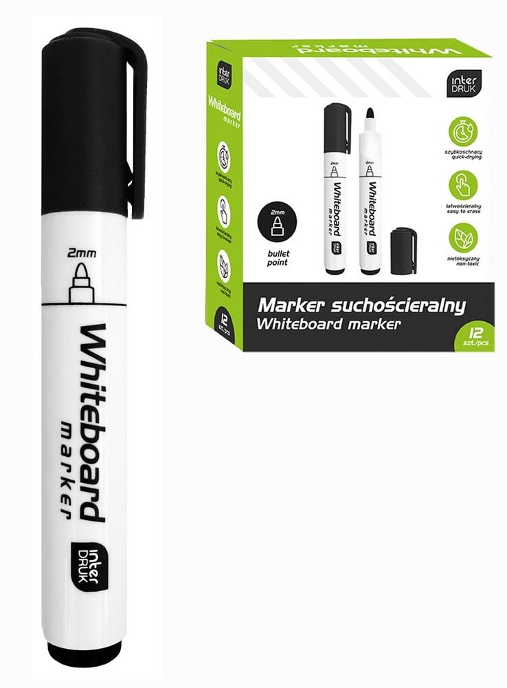 Marker do białych tablic, suchościeralny w kolorze czarnym.