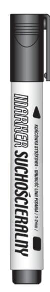 Marker przeznaczony do tablic suchościeralnych. Zawiera wysokiej jakości nietoksyczny tusz na bazie alkoholu, który jest łatwy do starcia z tablicy nawet po kilku dniach. Nie rysuje powierzchni. Bezpieczna skuwka. Odporna na złamania końcówka. Nie zawiera ksylenu i toluenu. Opakowanie: pudełko 12 sztuk.