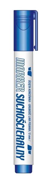 Marker przeznaczony do tablic suchościeralnych. Zawiera wysokiej jakości nietoksyczny tusz na bazie alkoholu, który jest łatwy do starcia z tablicy nawet po kilku dniach. Nie rysuje powierzchni. Bezpieczna skuwka. Odporna na złamania końcówka. Nie zawiera ksylenu i toluenu. Opakowanie: pudełko 12 sztuk. Kolor niebieski.