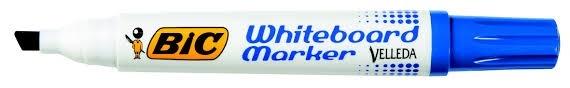 Marker suchościeralny Bic Velleda - Atrament na bazie alkoholu, praktycznie bezwonny. Polipropylenowa obudowa o średnicy 20mm i długości 13,8cm zawiera 4.9 g atramentu. Zblokowana końcówka pisząca nie ugina sie i nie cofa się pod naciskiem. Skuwka i zakończenie w kolorze tuszu. Piktogramy na korpusie informujące o przeznaczeniu markera. Tusz łatwy do usunięcia nawet po kilku dniach. Velleda 1701 - Okrągła akrylowa końcówka: średnica 6mm; szerokość linii 1,5mm. Velleda 1751 ścięta akrylowa końcówka : szerokość linii pisania 3,7 mm 5,5 mm. Oznaczenie producenta oraz kraju pochodzenia na korpusie. 12 sztu w opakwoaniu