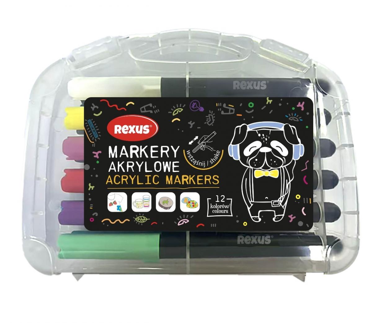 Zestaw 12 markerów akrylowych to doskonały wybór dla młodych twórców i miłośników kreatywnych projektów. Intensywne, dobrze kryjące kolory pozwalają tworzyć wyraziste rysunki, napisy i dekoracje na różnych powierzchniach.nFarba akrylowa szybko schnie i zapewnia trwały efekt. Markery świetnie sprawdzą się do ozdabiania papieru, kartonu, drewna, plastiku, kamieni czy szkła. Precyzyjna końcówka umożliwia zarówno rysowanie detali, jak i wypełnianie większych elementów.nZestaw zapakowany jest w praktyczne, zamykane etui, które ułatwia przechowywanie i transport.nCechy produktu:n12 intensywnych kolorówntrwała, szybkoschnąca farba akrylowandobre krycienuniwersalne zastosowanie na różnych powierzchniachnwygodne, zamykane opakowanienidealne do szkoły, DIY i kreatywnych prac plastycznychnŚwietny wybór do tworzenia wyjątkowych projektów z efektem profesjonalnego wykończenia.