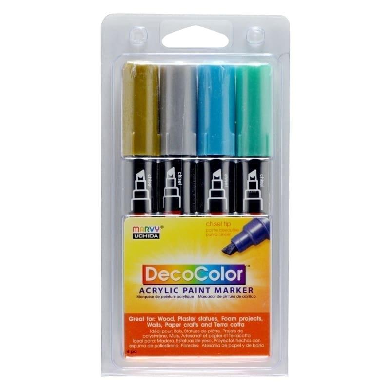 Markery akrylowe "Marvy DecoColor(R)" nadają się do pisania i malowania na dowolnej powierzchni: papierze, kartonie, szkle, kamieniu, betonie, metalu, plastiku, gipsie, terakoty, styropianu, drewnie i innych powierzchniach. Doskonale sprawdza się również w projektach szkolnych, może służyć do ozdabiania obiektów zewnętrznych (doniczek, ławek itp.) oraz innych kreatywnych dzieł sztuki lub designu. Ważne jest, aby wiedzieć: Przed użyciem sprawdź kompatybilność powierzchni. Te akrylowe markery mają trójstronną końcówkę w kształcie dłuta, która umożliwia rysowanie w różnych kierunkach. Farby do markerów nie zawierają kwasu, nietoksyczne i długo utrzymują po wyschnięciu. Nadaje się zarówno dla profesjonalistów, jak i amatorów.