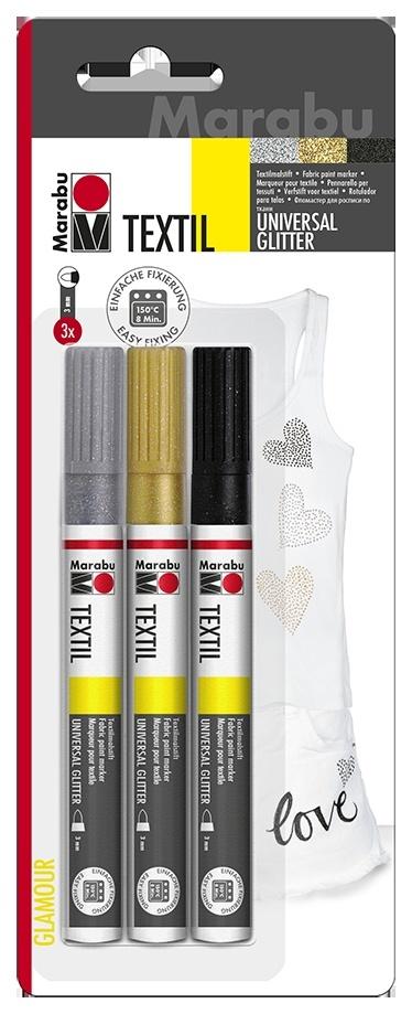 Opakowanie Markery do jasnych tkanin 3 kolory z brokatem