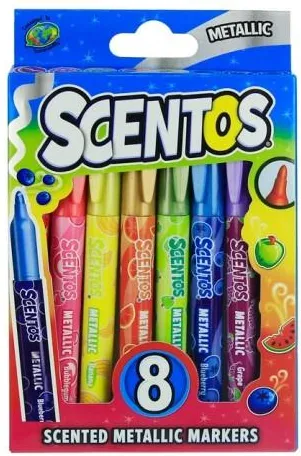 Dodaj tworzonym przez siebie tekstom i obrazkom odrobiny lustrzanego błysku! Zestaw pachnących markerów tworzy osiem metalicznych mazaczków w różnych kolorach. Markery pachną słodko, a inspiracją dla zastosowanych w nich zapachach były popularne owoce oraz guma balonowa.