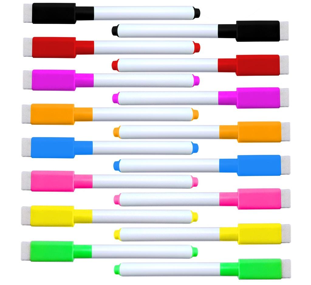 Zestaw Markerów suchościeralnych zestaw - TOBBY Niebrudząca i wygodniejsza alternatywa kredy. Markery TOBBY idealnie sprawdzą się również jako zabawka dla najmłodszych, którzy chcą przenieść swoje fantazje na wielki format. - 8 kolorów - 16 sztuk - Szerokość pisma 1.5 mm - Posiadają gumki do ścierania - Idealne do zabawy - Specjalny, szybkoschnący i łatwo-ścieralny tusz (możesz ścierać za pomocą gumki na skuwce, szmatki, a nawet dłoni) - Świetnie sprawdzają się do pisania po powierzchniach lakierowanych, tablicach białych i szkle! - Sposób pakowania: opakowanie foliowe z naklejką. Kolory: - czarny - czerwony - fioletowy - pomarańczowy - niebieski - różowy - żółty - zielony