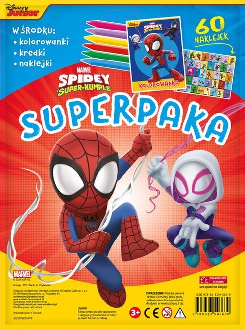 Kolorowanka z superbohaterami znanymi z animacji Spidey i superkumple, kredki oraz arkusz z naklejkami zapakowane w foliową kopertęz zapięciem strunowym. Koloruj Pająki oraz złoczyńców i ozdabiaj strony, jak tylko zechcesz.