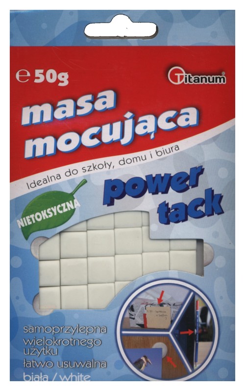 Power Tack to rewelacyjna masa mocująca o wielu zastosowaniach. Zastępuje pinezki i taśmę klejącą. Przymocuje prawie wszystko. Nie wysycha, więc można ją wielokrotnie stosować. Jest bezpieczna w użyciu. Pozwala przymocować kartki, plakaty, dekoracje i wiele innych drobnych przedmiotów.