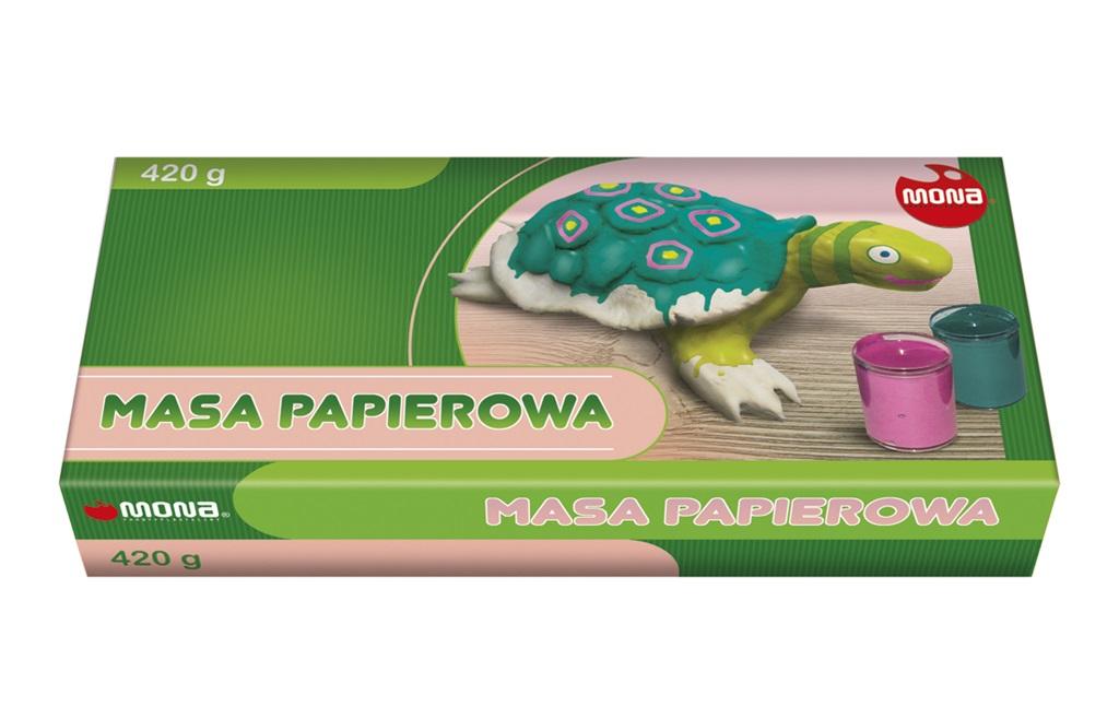 Masa papierowa do modelowania, gotowa do użycia, czysta, lekka, nadająca się do wykonywania figurek ze stelażem wewnętrznym lub figurek płaskich. Umacnia sprawność manualną, rozwija zmysł estetyczny i dekoracyjny. Wysycha w temperaturze pokojowej. Po wyschnięciu może być ozdabiana poprzez malowanie. Nie plami, niewykorzystana masa może być przechowywana w swoim plastikowym opakowaniu, które chroni ją przed wyschnięciem.