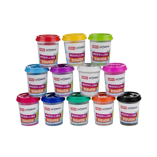 Masa plastyczna: kubki uzupełniające to jeszcze więcej zabawy! Przyniosą one Twojemu dziecku mnóstwo radości i satysfakcji z możliwości budowania własnego, kolorowego świata. Pokaż swojemu dziecku niezwykły, kolorowy świat. Zabawa masą plastyczną pomaga rozwijać wyobraźnię, lepienie modeli pomaga kształtować postrzeganie figur trójwymiarowych, rozwija również zdolności manualne. Zestaw kreatywny, masa plastyczna Ciastokreacja ma przyjemną konsystencję, która ułatwia dzieciom tworzenie własnych konstrukcji. Masa plastyczna, duże kubki uzupełniające W zestawie aż 48 dużych kubków masy plastycznej w 12 kolorach (po 4 kubki z każdego koloru): czerwonym, 2 odcieniach zielonego, żółtym, dwóch odcieniach niebieskiego, pomarańczowym, białym, czarnym, fioletowym, malinowym oraz różowym (z drobinkami brokatu). Kubki o pojemności 141g każdy, wieczka stanowią równocześnie foremki. Postaw na kreatywność Pokaż swojemu dziecku niezwykły, kolorowy świat. Zabawa masą plastyczną pomaga rozwijać wyobraźnię, lepienie modeli pomaga kształtować postrzeganie figur trójwymiarowych, rozwija również zdolności manualne. Zabawa z masą plastyczną zapewnia mnóstwo radości, dziecko może samodzielnie wykonywać trójwymiarowe elementy, budować domy, miasta, a następnie ozdabiać je wykorzystując proponowane przez nas wzory. Tak bogaty zestaw pozwala nie tylko zapewnić dostępność masy plastycznej na długi czas, lecz przede wszystkim umożliwia eksperymentowanie z kolorami. 12 kolorów masy plastycznej można dowolnie łączyć tworząc kolejne. Przewodnik po zasadach mieszania kolorów i ich efektach zamieszczony został na opakowaniu. Bezpieczna zabawa Bezpieczeństwo użytkowników, w szczególności dzieci, jest dla nas najwyższym priorytetem. Masa plastyczna jest produktem nietoksycznym, spełnia wymagania dyrektywy pozwalające na dopuszczenie jej do użytku przez najmłodszych. Odpowiednia konsystencja ułatwia dzieciom wyrabianie i wyciskanie masy.