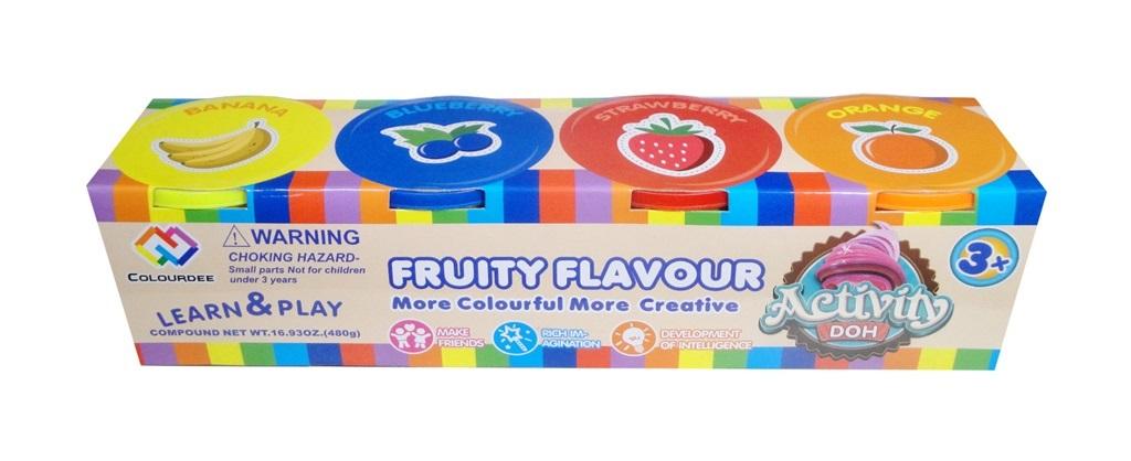 Zestaw pachnącej masy plastycznej. Każdy kolor pachnie innym owocem. W skład zestawu wchodzą 4 kubeczki z masą (4 różne kolory). Po zakończonej zabawie, ciastolinę należy chować do kubeczków, aby uniknąć jej wyschnięcia (a dalej kruszenia). Produkt przeznaczony dla dzieci powyżej 3 lat.