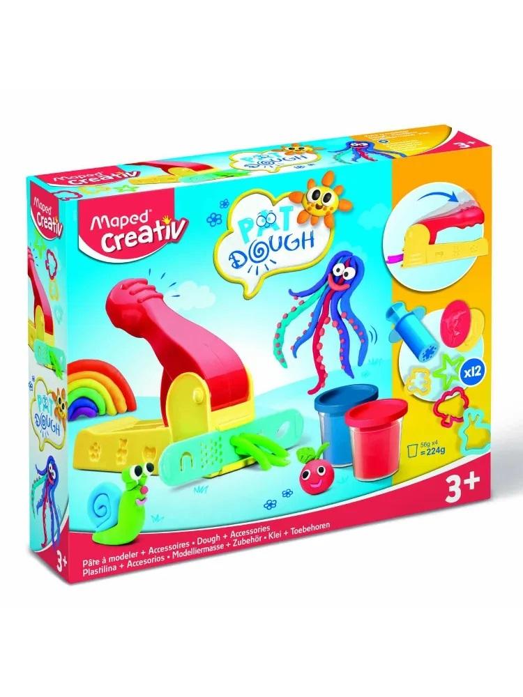 Z miękką, nieklejącą masą plastyczną Maped Creativ naprawdę można kreatywnie zaszaleć. Ulepisz praktycznie wszystko co przyjdzie Ci do głowy. Kolorowe akcesoria uatrakcyjnią zabawę: prasa do wyciskania 10 różnych wzorów, 4 formy do wyciskania kształtów, nożyk, 2 owalne pieczątki. Zabawa z masą rozwija zdolności manualne dzieci. Ćwiczenie mięśni małych rączek jest ważnym etapem przygotowującym najmłodszych do nauki pisania. Transparentne pojemniki 56 g umożliwiają podgląd zawartości bez otwierania.