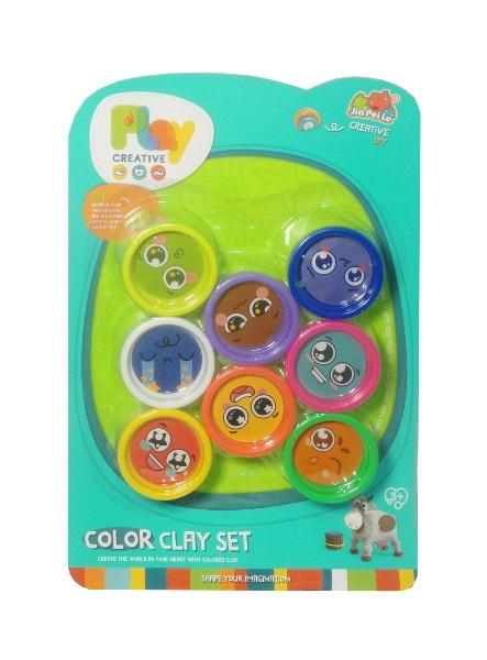 Zestaw masy plastycznej do zabawy. W skład zestawu wchodzi 8 kubeczków z masą (8 różnych kolorów). Aby uzyskać nowe kolory masą należy łączyć ze sobą. Z tyłu opakowania jest ściągawka, które kolory połączyć aby otrzymać nowy. Na wieczka są naklejone minki Po zakończonej zabawie, ciastolinę należy chować do kubeczków, aby uniknąć jej wyschnięcia (a dalej kruszenia). Zabawka przeznaczona dla dzieci powyżej 3 lat. Produkt zapakowany w kartonową podstawkę z przezroczystym kloszem,