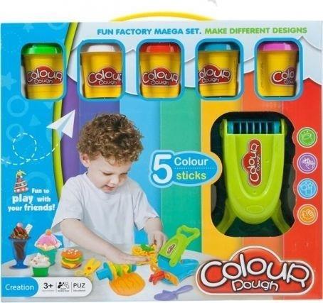 Zestaw Mas plastycznych z maszynką i foremkami od MEGA CREATIVE, to propozycja na kreatywne spędzenie wolnego czasu. Możliwość mieszania mas plastycznych pozwoli uzyskać nowe kolory a dziecko w ten sposób rozwija swoje zdolności plastyczne, manualne i pobudza wyobraźnię! W zestawie znajduje się 5 kolorów masy plastycznej, maszynka do formowania, akcesoria do formowania oraz foremki do tworzenia kształtów i wzorów. Zestaw wykonany z masy oraz plastiku. Przeznaczony dla dzieci w wieku: 3+. Nie wymaga zasilania bateriami.