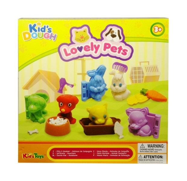 Zestaw kolorowej masy plastycznej (3szt) oraz foremek zwierząt oraz innych akcesoriów potrzebnych do stworzenia zwierzątek domowych kosz, miska, foremka marchewki, grzebień, suszarka. Produkt zapakowany w kartonowe opakowanie. Produkt dla dzieci od 3 lat. Podane wymiary są wymiarami opakowania.
