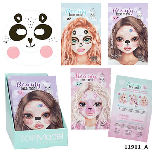 Maseczka kosmetyczna z nadrukiem TOPModel, nawilża, odświeża i rewitalizuje cerę, jednorazowa, 3 wzory opakowań: różowe, niebieskie lub fioletowe.