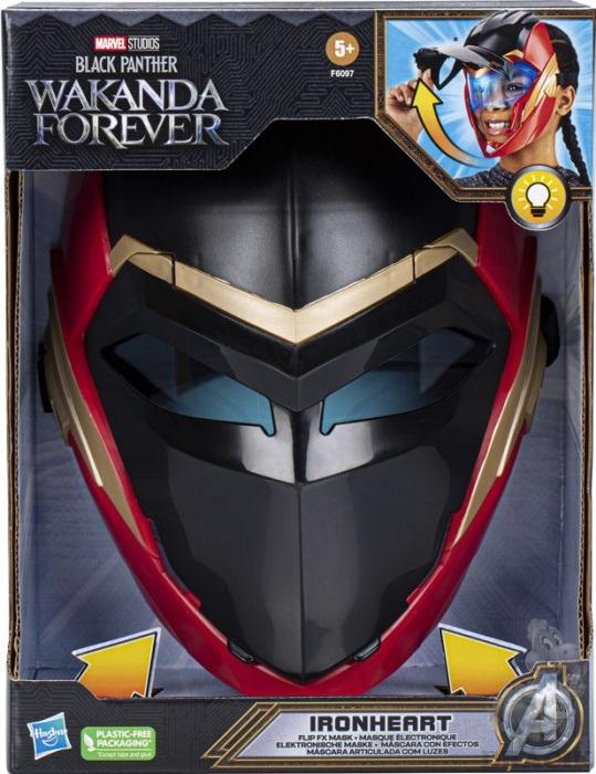Załóż maskę bohatera Ironheart i pomóż innym bohaterom Wakandy w ich misji uratowania świata! Maska posiada podnoszoną osłonę twarzy oraz funkcję podświetlania. Wymagane 1 x baterie AA (znajdują się w zestawie).