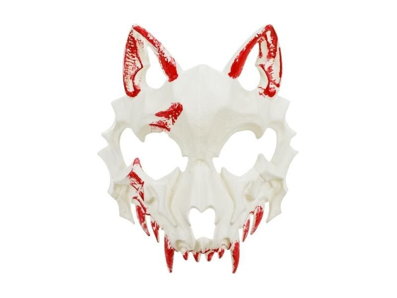 Maska Krwawy Wilk w kolorze biało-czerwonym, wymiary maski ok. 17 x 20 cm.