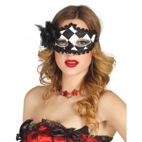 Dookoła oczu przymocowane kryształki imitujące cyrkonie.